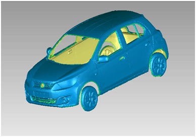 以全局攝影測量系統獲得的標記點數據為整體基準,輻射到個別掃描區域,掃描汽車整車以及部分拆解后的零件,獲取其三維數據。